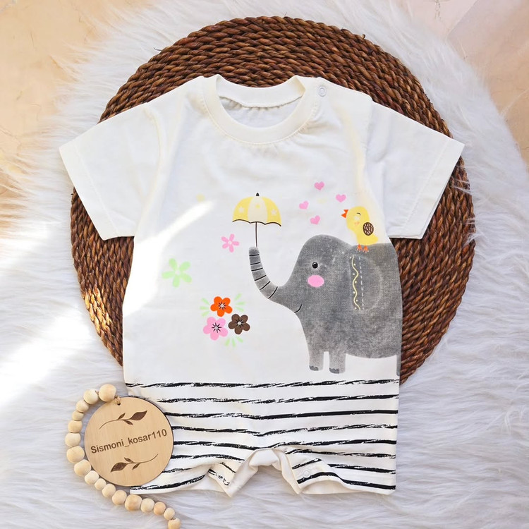 یک رامپر خاص و خنک با طرح فیل و زمینه سفید