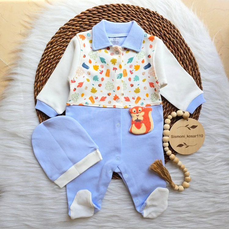 سرهمی آبی با طرح سنجاب، جنس نخ پنبه نرم و خنک، مخصوص پوست لطیف بچهها