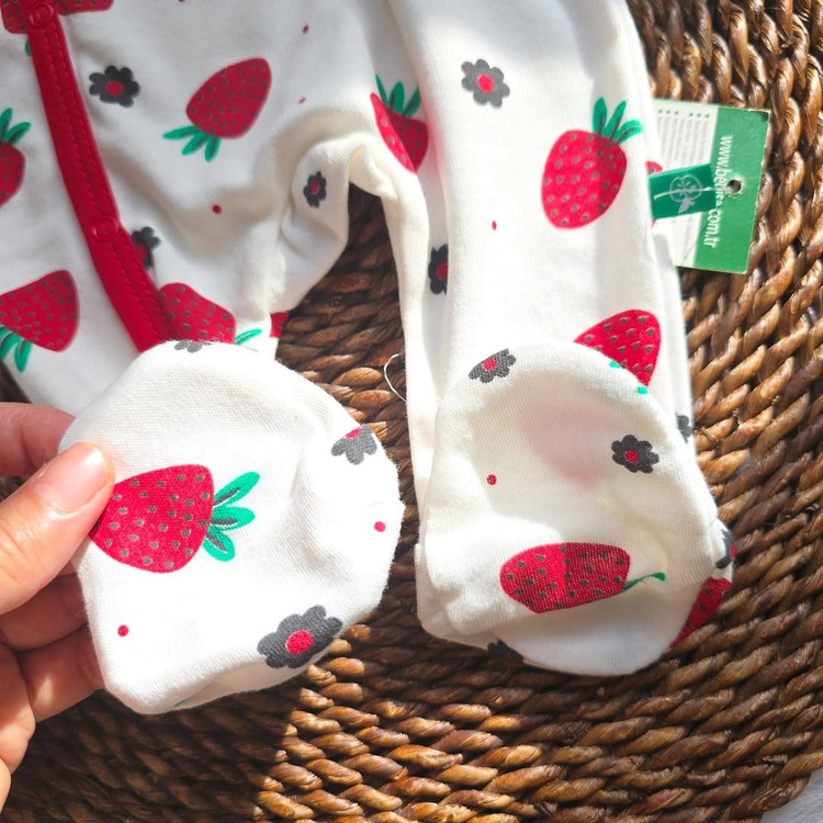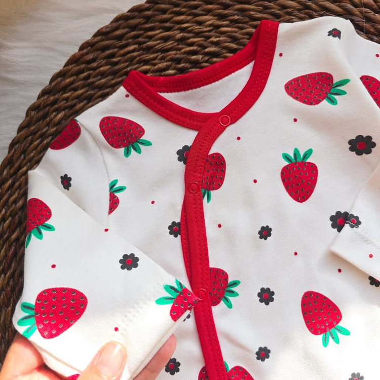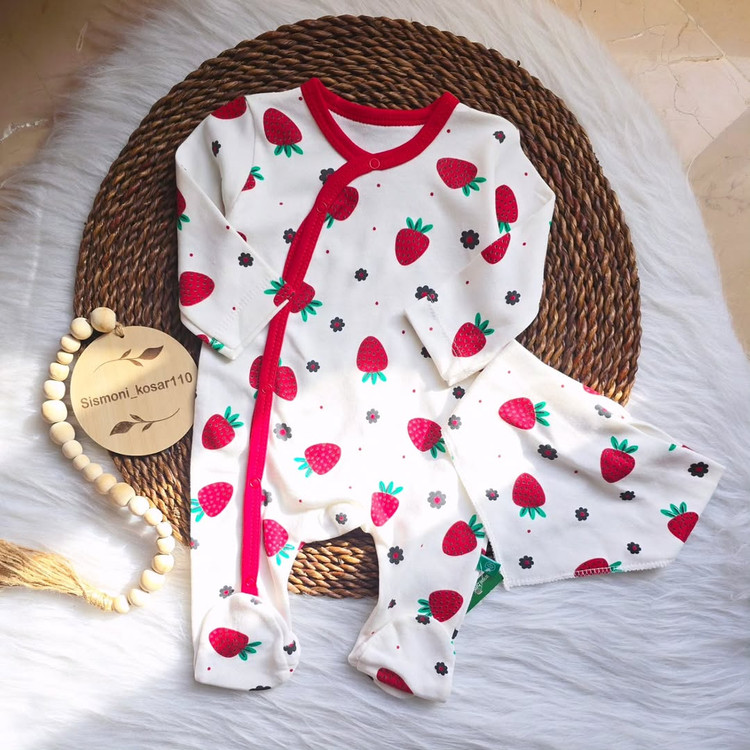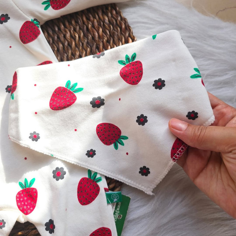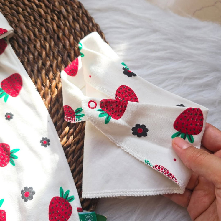 ست سرهمی نوزادی با پیشبند ترک با طرح خوشگل توتفرنگی،