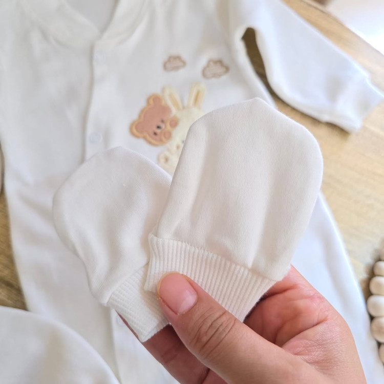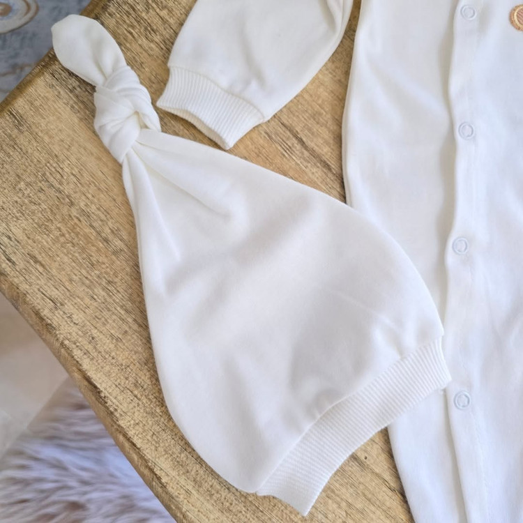 سرهمی سفید بدون جوراب با کلاه و دستکش