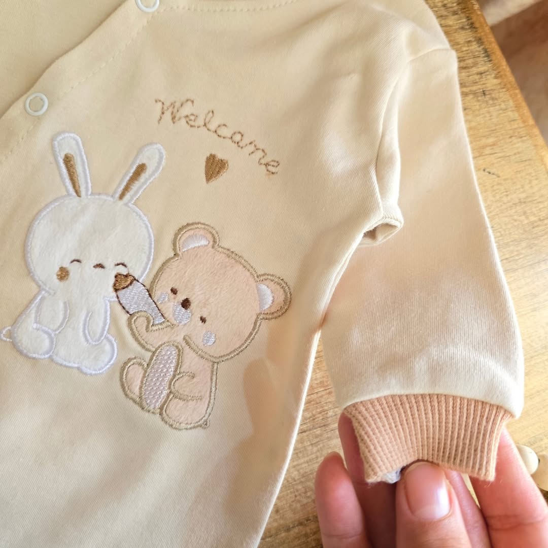 سرهمی کرم با طرح برجسته، از جنس نخ پنبه نرم ، مخصوص پوست لطیف بچهها