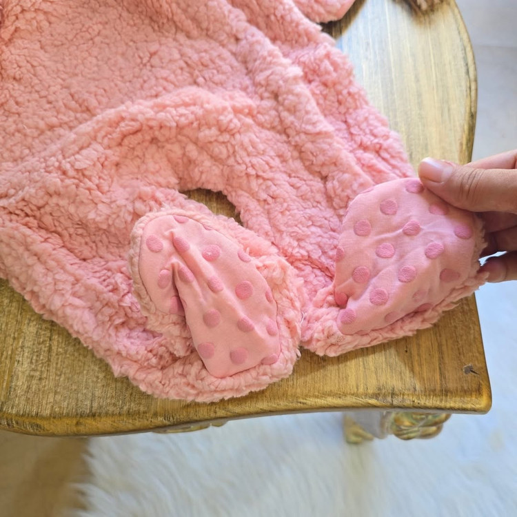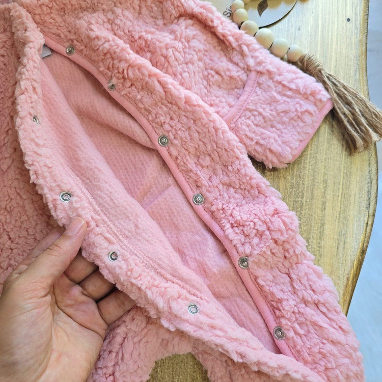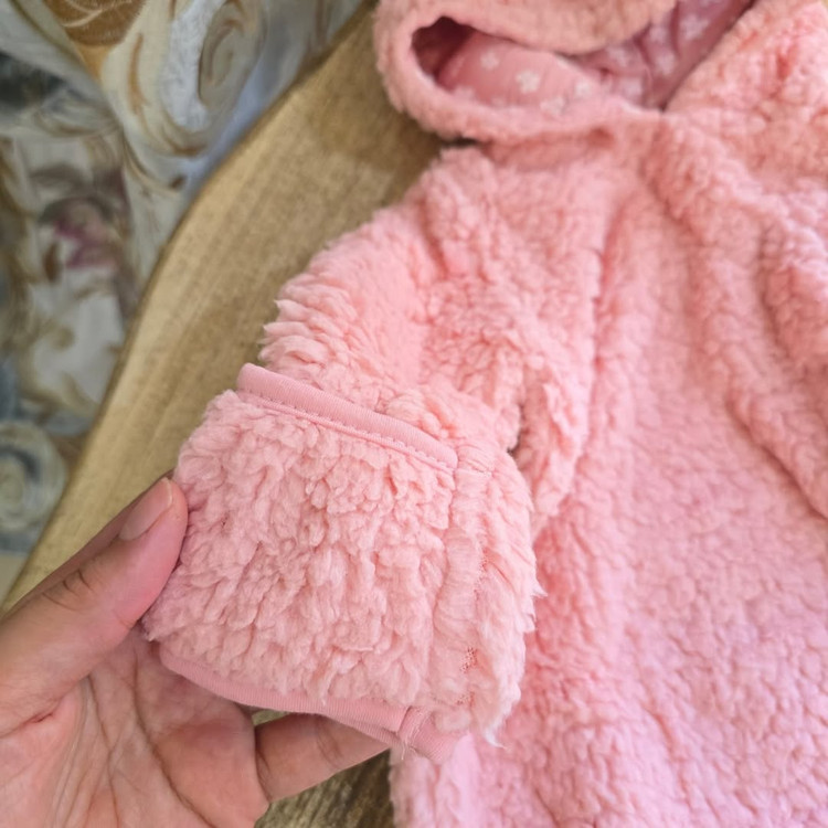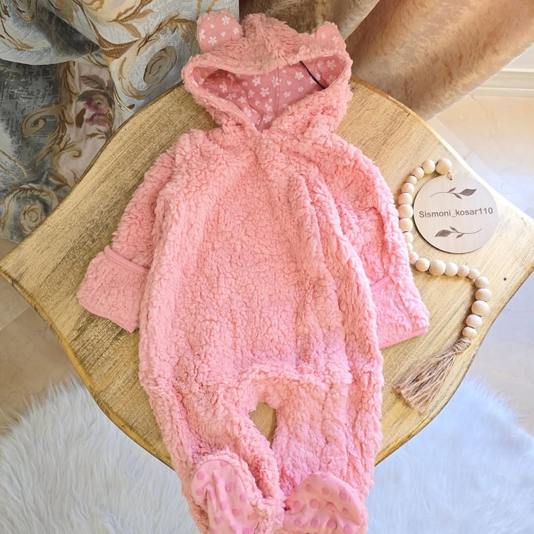 داخلش کاملاً کرکداره، تا پایین دکمهداره برای تعویض راحت، جورابدار و حتی دستکش سرخود هم داره 🧸