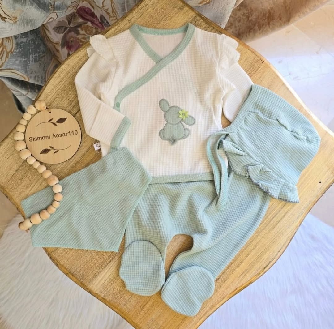 کد جست و جو در سایت ۱۱۸ ✨ ست ۴ تکه ترک مخصوص گلدخترای خوشکل پیج ✨ جنس بیسکوییتی نرم و لطیف بلوز با دستکش و بدون دستکش قابل استفاده شلوار جورابدار، راحت و کاربردی مناسب برای استایل شیک کوچولوتون 💚👶