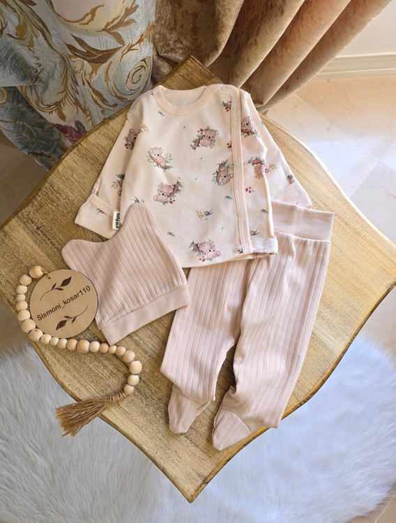 ست ۳ تکه اسپرت نوزادی رنگ کرم کد ۱۷۹